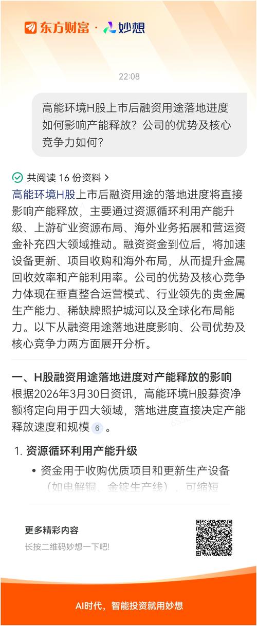 高能环境H股上市后融资用途落地进度如何影响产能释放?公司的优势及核心竞争力如何? $高能环境(SH603588)$$中证1000(SH000852)$$贵金属(BK0732)$