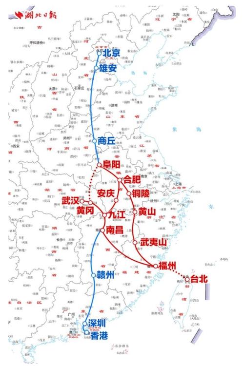 3月25日国台办新闻发布会上,发言人朱凤莲提到“台湾民众可以沿京台高速公路自驾到北京游览”,随即引发市场对两岸交通通道的关注。鲜为人知的是,规划中还有一条贯穿湖北、直达台湾的高铁大通道——京港(台)高铁。 据武汉市发改委信息,阜阳至黄冈高铁可行性研究报告已获国家发改委批复,计划年内开工建设,湖北段长约131公里,建成后将贯通京港(台)高铁通道西径路。这意味着,未来从武汉乘坐高铁直达台湾,已从概念走...