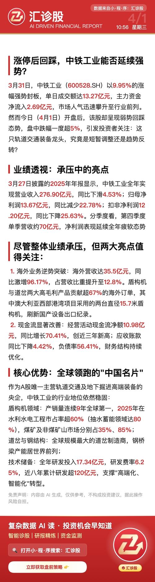 $中铁工业(SH600528)$ 行情分析