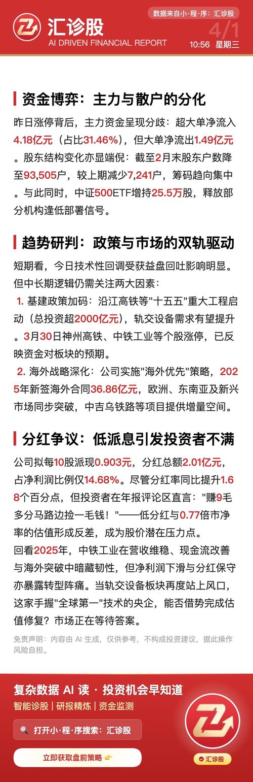 一、技术面与量能分析:低位异动,资金博弈明显 从K线和分时图来看,$建设机械(SH600984)$呈现出明显的**“超跌反弹+底部构筑”**特征: 量能表现:*主力净流入:目前今日主力净流入约595万元,虽然金额不大,但在近期持续走低后出现净流入,说明有部分中短线资金开始进场。 成交分布:目前的换手率为1.35%,量比0.65。这意味着股价在4.17元附近波动时,抛压已经显著减轻,目前的成交多为缩...