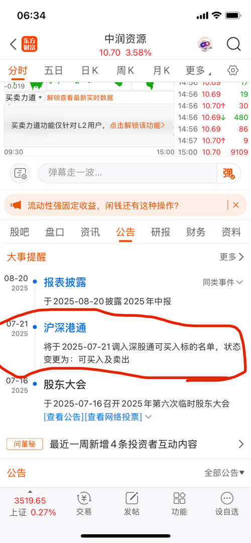 中润资源7月21号将被调入深股通名单!!!
