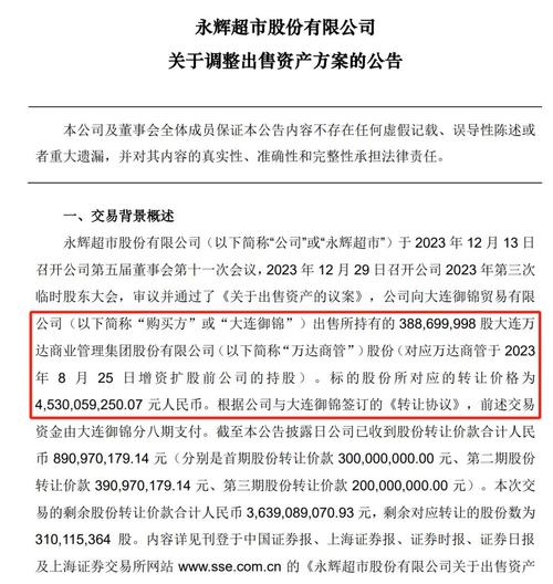 王健林出面担保永辉超市(601933)7月26日晚间披露,经各方协商,公司拟与大连御锦贸易有限公司、王健林、孙喜双、大连一方签署《转让协议之补充协议》。《补充协议》对大连御锦支付购买大连万达商业管理集团股份有限公司部分股权剩余款项的分期进度及担保措施进行调整。对于调整原因,上市公司称源于购买方(即大连御锦)目前存在短期资金周转困难,其正积极处置资产以回笼资金用以支付交易股份转让价款。记者注意到,大...