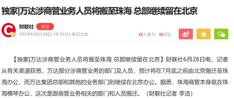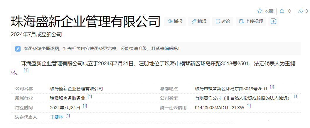 万达商管或正在撤出北京。据《观点网》报道,8月2日,大连万达集团股份有限公司在珠海成立了珠海盛新企业管理有限公司。BT财经通过天眼查获悉,珠海盛新企业管理有限公司确切成立时间为2024年7月31日,王健林为企业法人,注册资本为1000万元人民币。从天眼查透过股权穿透可以发现,大连万达集团股份有限公司持有珠海盛新企业管理有限公司100%的股权,大连万达集团股份有限公司第一大股东为大连合兴投资有限公司...