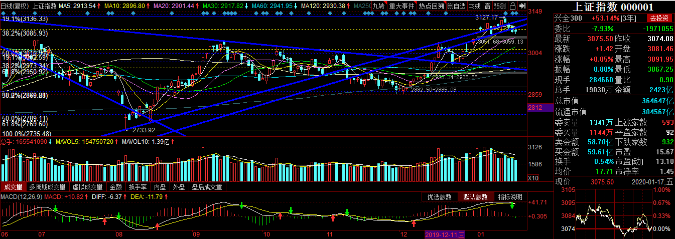 2020.01.17收盘简评:科创板连续大涨,指数继续震荡盘整