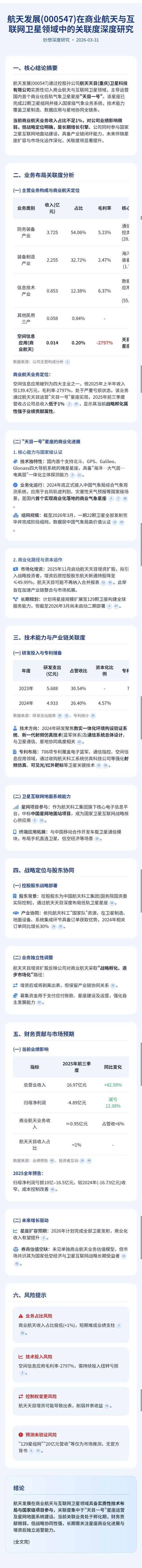 $航天发展(SZ000547)$ $商业航天(BK0963)$ $卫星互联网(BK0921)$ 航天发展(000547.SZ)作为中国航天科工集团旗下的核心电子信息产业上市平台,主营业务以产业为核心。 公司正积极布局商业航天与卫星互联网领域,构建"军工信息化为根基、商业航天为引擎、网络安全为补充"的多赛道发展格局。空间信息应用类产品虽当前收入占比仅0.20%且毛利率为负,但作为战略性业务被...
