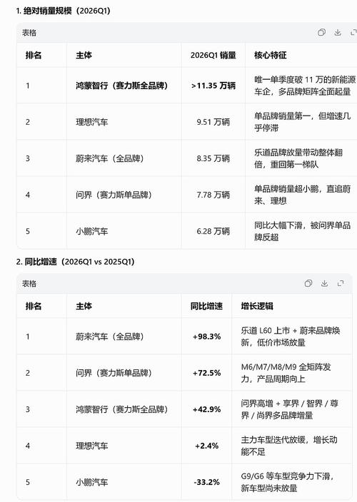 问界一季度销量同比增长72.5%,高于鸿蒙智行整体增速 来自能源的革命的雪球专栏 赛力斯一季度销量同比增长72.5%,鸿蒙智行销量同比增长42.9%。 网上充斥各种唱衰舆论,和事实销量数据是不相符的。 蔚来销量确实不错,同比销量增速排第一。 如果问界一季度销量同比增长72.5%都算拉,那小鹏一季度销量同比下滑33%算什么? 小鹏汽车今年这样的销量表现都能稳定在1100亿市值以上,看样子,机器人和低...