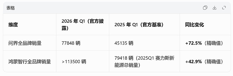问界一季度销量同比增长72.5%,高于鸿蒙智行整体增速