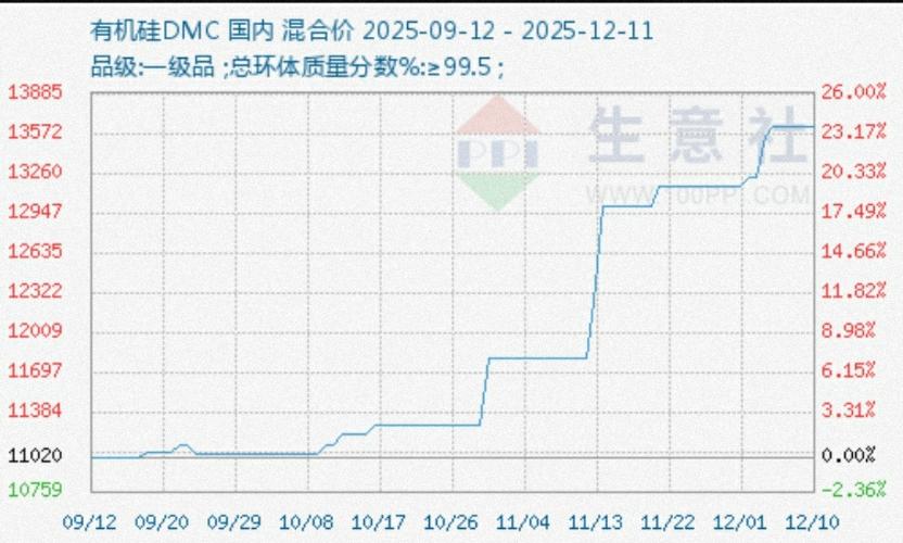 $有机硅(BK0961)$根据最新市场信息,有机硅DMC(二甲基环体硅氧烷)的价格近期出现显著上涨。截至2025年12月5日,其主流报价区间在13400-13800元/吨,较前一日下跌50元/吨,当日均价为13600元/吨。1 近期价格走势与关键事件 快速上涨阶段:自11月中旬以来,有机硅DMC价格启动上涨。11月12日,行业头部厂商协商减产30%并设定价格目标13500元/吨,会后厂商采取封盘停...