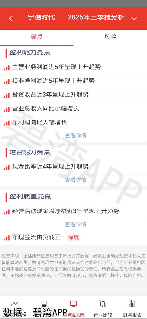 宁德时代一季度净利润同比增长32.75%,但需关注两大风险:一是资产减值损失扩大,虽主营业务利润增长38.99%抵消影响,但盈利质量承压;二是净现金流同比下降39.13%,主因投资支出激增(固定资产投资增长46.05%)及分红支出大幅上升6.51倍,反映激进扩张与股东回报对现金流的双重挤压。研发优势虽支撑长期竞争力,短期需警惕资本开支压力对财务弹性的削弱。