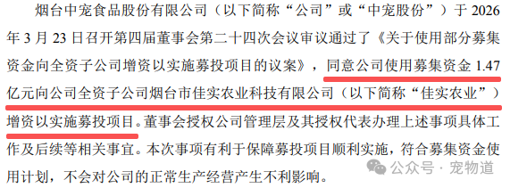 增资1.47亿元,加码6万吨高端宠粮项目