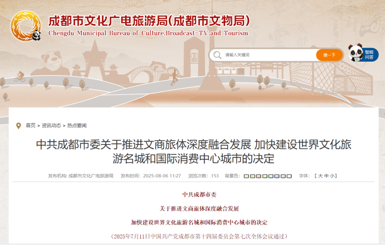 8月6日,成都市文化广电旅游局发布《关于推进文商旅体深度融合发展加快建设世界文化旅游名城和国际消费中心城市的决定》。 根据《决定》可知,到2027年,成都市文商旅体深度融合发展格局不断优化,“三城三都”影响力持续增强,社会消费品零售总额达到1.2万亿元。 《决定》指出,强化科技赋能,大力发展文化创意产业。 推动人工智能、元宇宙、区块链、物联网、新型显示等技术研发与转化,拓展在文物修复、版权保护、融...