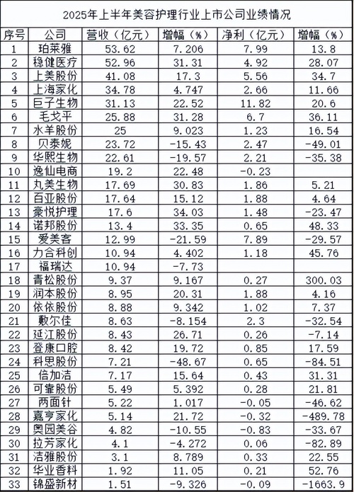 透视美容护理行业2025年上半年财报:珀莱雅领跑,巨子生物最赚钱