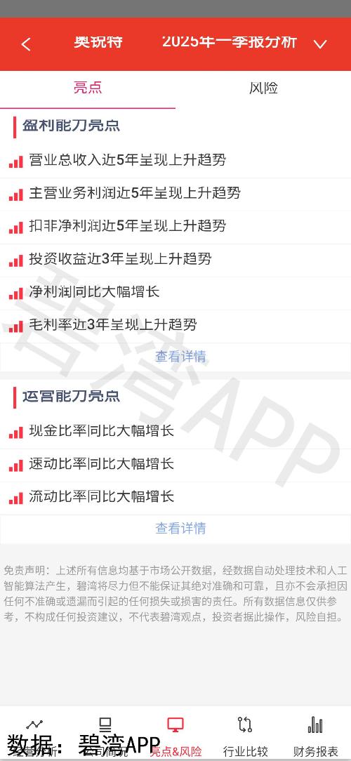 奥锐特2025年一季度净利润同比大增45.31%,主因主营业务利润增长38.48%,但经营活动现金流净额骤降71.26%,凸显应收账款激增与经营性现金收支恶化的矛盾。净现金流同比下滑88.92%,虽投资活动现金流改善,但经营造血能力承压。利润与现金流背离反映盈利质量下行风险,需警惕收入增长背后的回款压力及营运效率问题。所得税费用增速30.69%亦对净利润持续性形成制约。