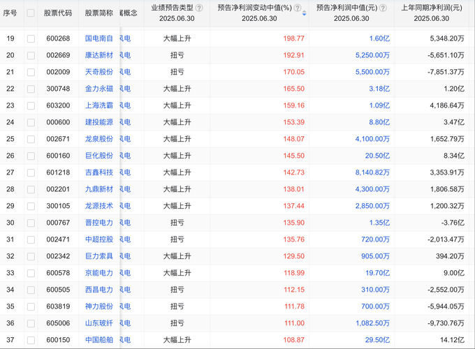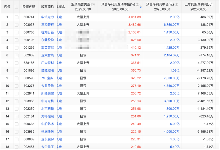 看了这么多板块,不管是人形机器人,还是军工科技,看来看去还是风电板块的业绩成长性超强,目前已经公布业绩预告的公司中,风电领域有3个龙头利润增长超过20倍,有40个风电股利润增长超过100%。 中报利润增长超过300%的公司: 华银电力,利润增长4012%达到2亿;$华银电力(SH600744)$ 三和管桩,利润增长3490%达到0.68亿;$三和管桩(SZ003037)$ 容知日新,利润增长210...
