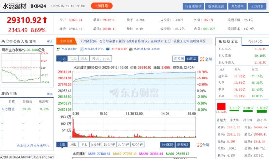 2025年7月21日 今日A股市场以水泥建材8.69%领衔的传统基建产业链全线爆发,$工程机械(BK0739)$、$钢铁(HKBLOCK|HK1049)$、$电网设备(BK0457)$等实体经济板块纷纷跟涨,而银行、教育、互联网服务等板块则集体承压。老经济强,新经济弱,背后是市场预期的变化和资金配置逻辑的调整。 水泥建材:8.69%涨幅背后的供需逆转 水泥建材板块今日8.69%的涨幅堪称惊艳,28...
