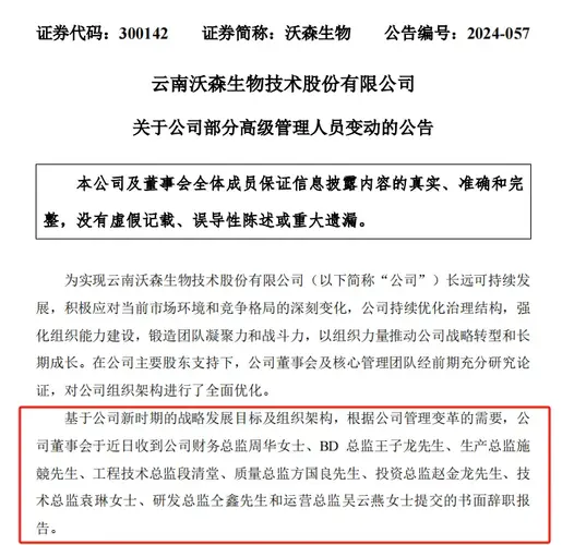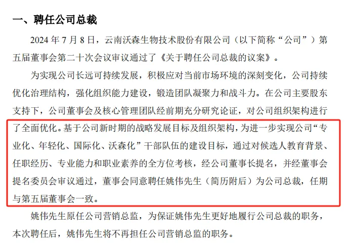 在经历疫苗接连终止研发、业绩进一步下滑之后,云南沃森生物技术股份有限公司(下称“沃森生物”,300142.SZ)开始谋变。沃森生物称,为实现公司长远可持续发展,积极应对当前市场环境的深刻变化,公司持续优化治理结构,强化组织能力建设,锻造团队凝聚力和战斗力。基于公司新时期的战略发展目标及组织架构,为实现公司“专业化、年轻化、国际化、沃森化”干部队伍的建设目标。为此,沃森生物发布公告,公司总裁姜润生于...