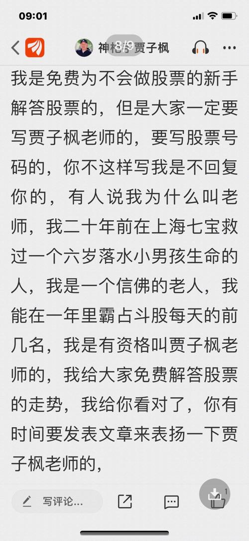 大家为什么不能写贾子枫老师,为什么不能写股票号码,你不写我是不回复的,不看好是可以走开的,我是不在乎粉丝多少的人。