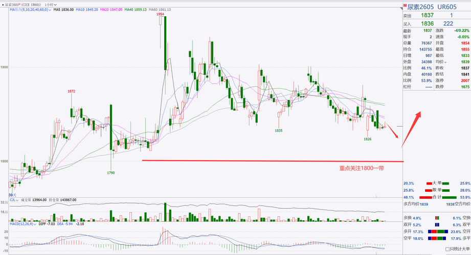 $尿素609(CZCE|UR609)$尿素09合约:尿素在震荡一段时间以后,开始转头向下了,目前回落力度已经跌破了前一波支撑,整体有转弱的迹象了,并且未有太大的反弹力度,建议短线反弹做空为主导,短线关注1895附近的高空位置,带好防守(投资建议仅供参考具体以实盘操作为主)