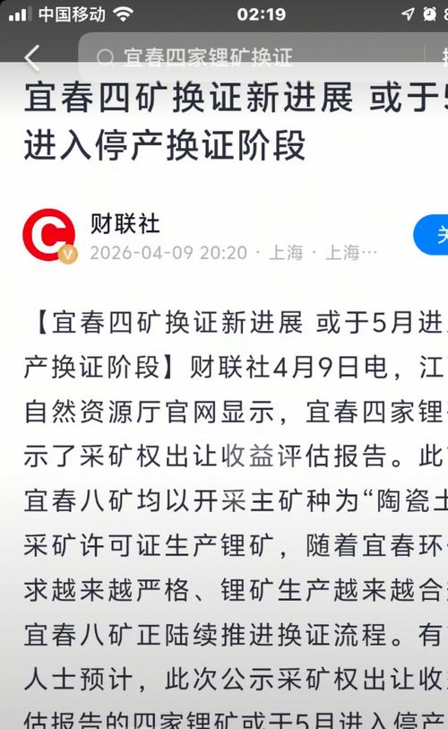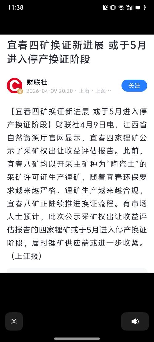 $碳酸锂2605(GFEX|lc2605)$宜春四矿换证新进展,或于5月进入停产换证阶段,锂矿供应端或进一步收紧。