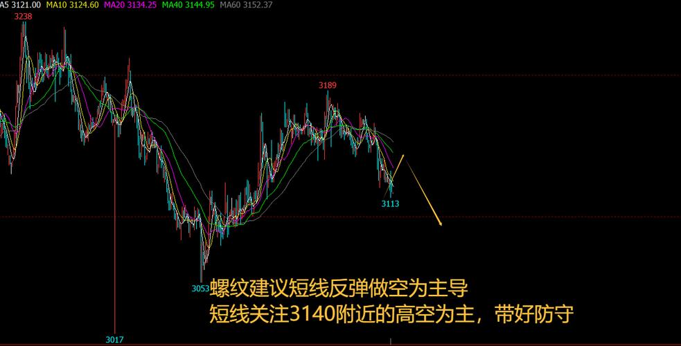 $螺纹钢2609(SHFE|rb2609)$螺纹09合约:螺纹今日继续延续回落走势,从小时级别上看回来力度不断创低,并且没有太大的反弹力度,整体弱势格局不变,建议短线反弹做空为主导,短线关注3140附近的高空为主,带好防守(投资建议仅供参考具体以实盘操作为主)