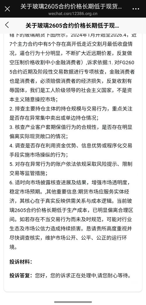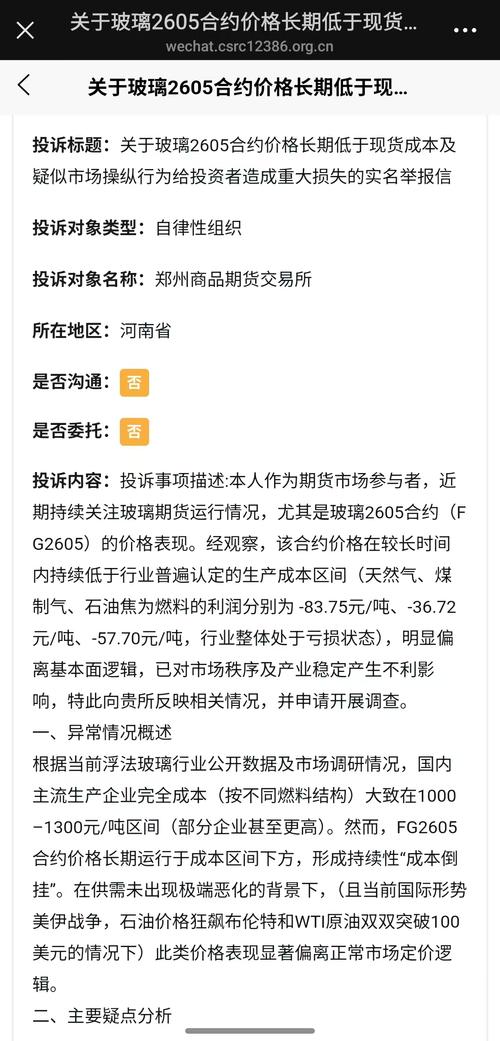 $玻璃605(CZCE|FG605)$玻璃FG605惨不忍睹:中泰系恶意操纵+数据造假持续阴跌,呼吁全体受害者集体向交易所举报 玻璃期货06合约(FG605)近期走出完全脱离基本面的单边阴跌行情,多头被连续闷杀、抄底即被套、持仓者绝望割肉,市场已无正常博弈可言。种种迹象表明,这并非供需导致的合理下跌,而是以中泰系资金为主的机构恶意控盘、联手数据造假、操纵期货价格的典型乱象,严重侵害产业客户与普通投...
