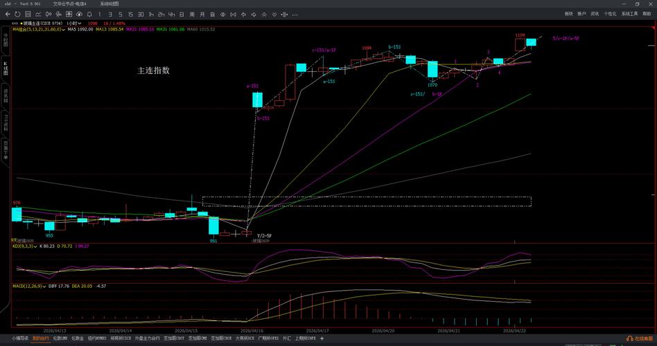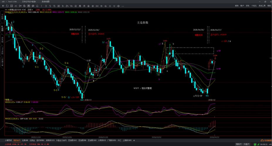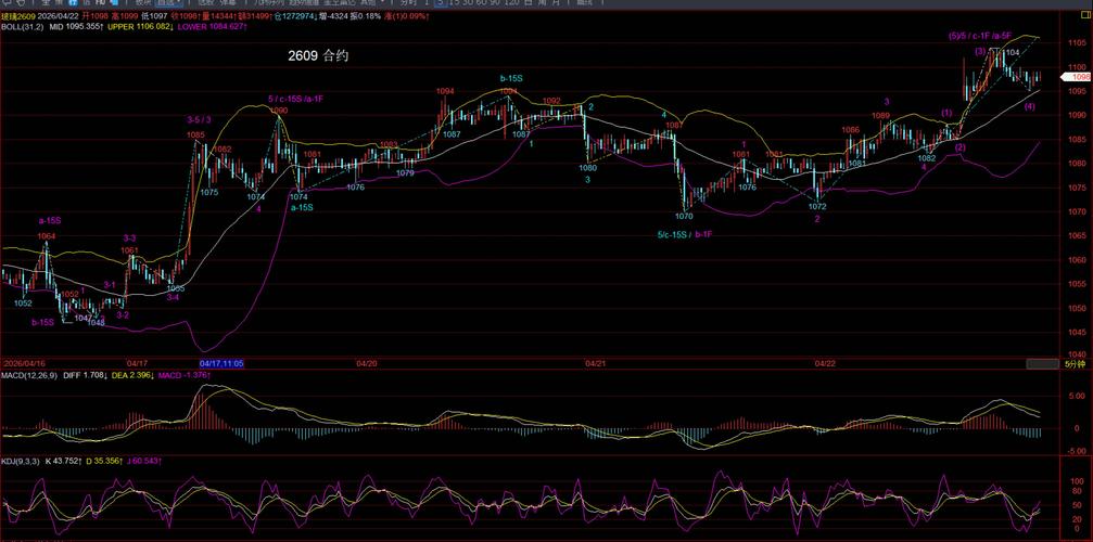 $玻璃主连(CZCE|FGM)$ 主连指数日k线图 主连指数60分钟k线图 2609合约5分钟k线图 紫色字符a-5F(5分钟级别的a浪反弹)接近尾声了,不要追高,待回调进多单,强支撑位在1055--1065。