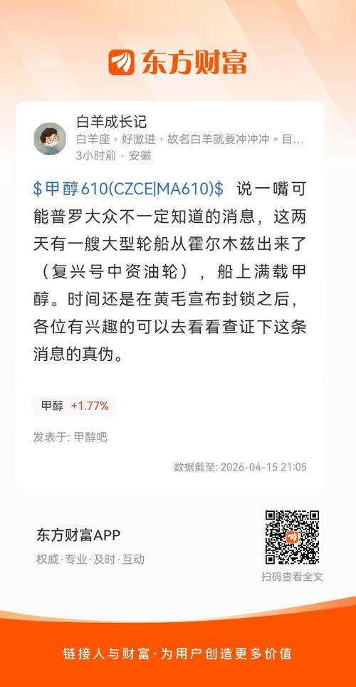 $甲醇610(CZCE|MA610)$说一嘴可能普罗大众不一定知道的消息,这两天有一艘大型轮船从霍尔木兹出来了(复兴号中资油轮),船上满载甲醇。时间还是在黄毛宣布封锁之后,各位有兴趣的可以去看看查证下这条消息的真伪。