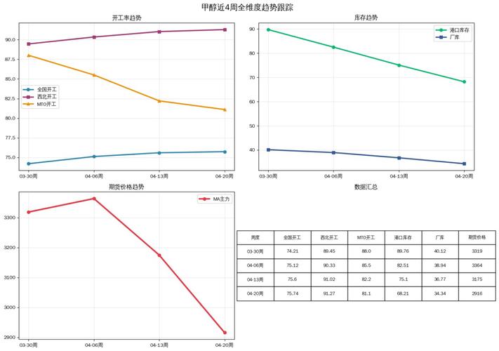 近日,美伊谈判陷入拉锯,甲醇维持高位区间震荡。由于地缘局势不确定性意味较浓,甲醇盘面受地缘影响的溢价仍有支撑。 从基本面看,沿海市场进口持续低位,港口库存延续去化;内地市场则在供应端预计维持高开工负荷。国内甲醇需求端中MTO开工预计维持,传统需求开工则有提振预期,但港口库存高位仍有压制。 预计下周甲醇市场总体保持震荡,关注地缘局势进展。风险因素:上行风险——宏观利好、海外供应扰动;下行风险——煤价...