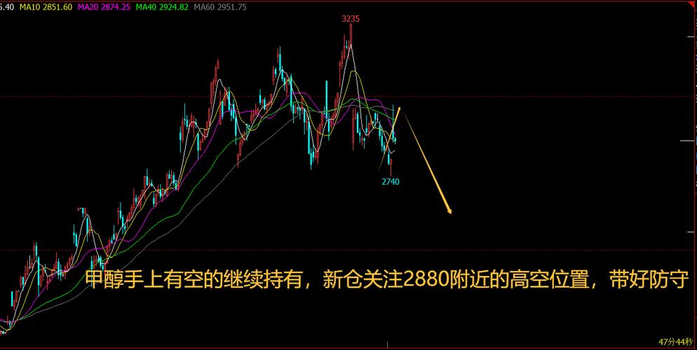 $甲醇609(CZCE|MA609)$甲醇09合约:甲醇今天开盘跳空高开,从走势上来看甲醇小时级别已经有转弱的迹象了,前期回落力度已经跌破了前一波低点支撑,并且重心也在往下走,手上有空的继续持有,新仓关注2880附近的高空位置,带好防守(投资建议仅供参考具体以实盘操作为主)