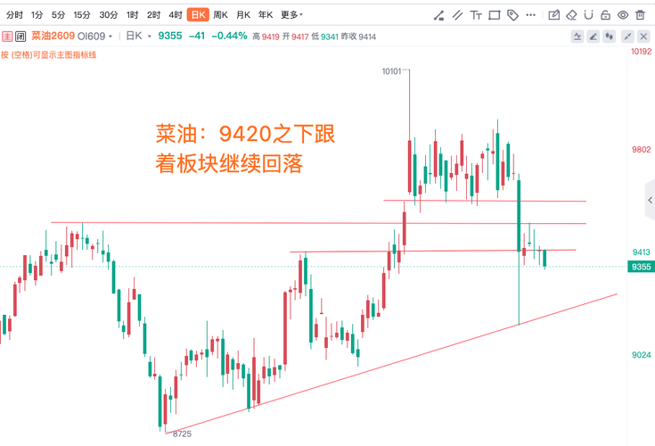 菜油:9420之下跟着板块继续回落
