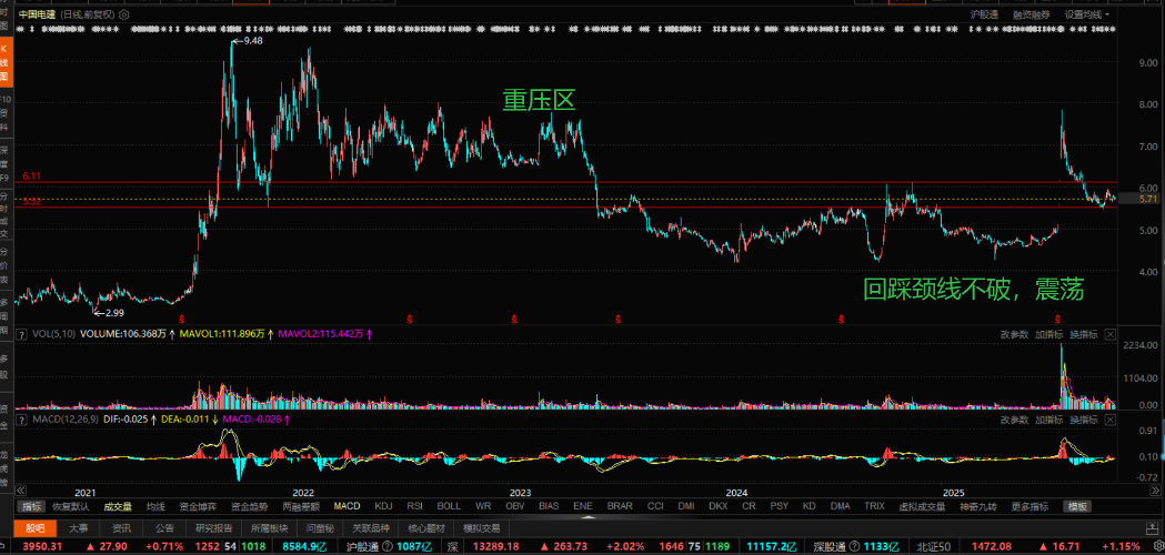 $中国电建(SH601669)$ 雅江水电站消息刺激,短期翻倍,重压区回落,回踩颈线不破,震荡后看是否向上,盘子大,比较慢,仅观察,不建仓