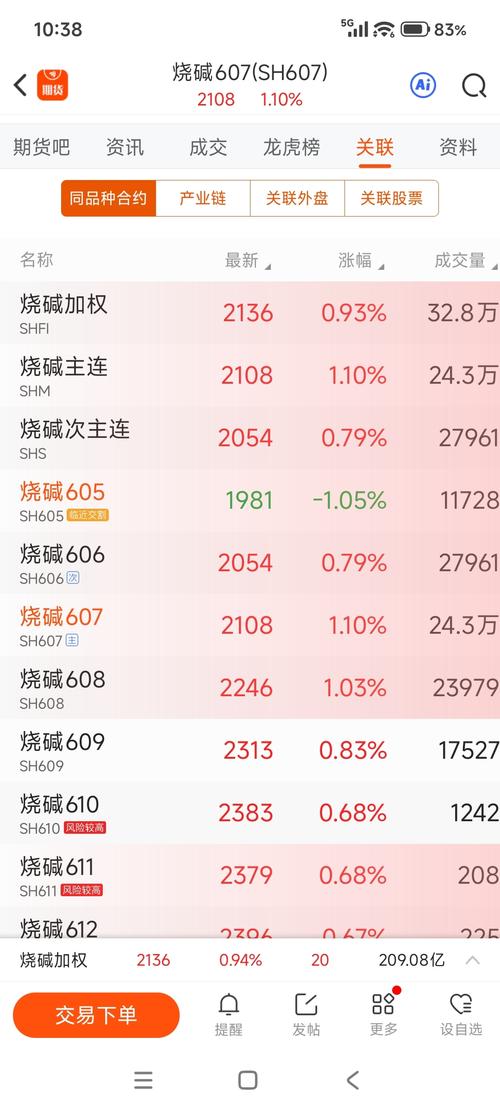 $烧碱605(CZCE|SH605)$都在涨,就它在跌,真牛逼啊,一直有在开空的,连续不断,主力在想啥呢,盯着这个三瓜两枣