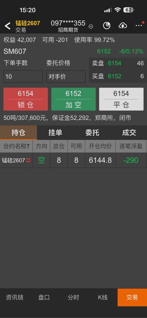 $锰硅607(CZCE|SM607)$把止损放到前期高点了6276,今天看到一只减仓上长,就没有止损