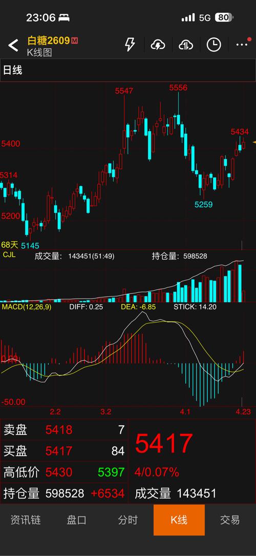 $白糖609(CZCE|SR609)$09收盘5415。明天开盘拉到5445