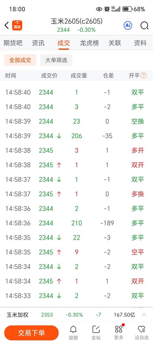 $玉米主连(DCE|cm)$吹气第一名尾盘主要以空平和多平为主,我就没看到200手的多开或者多换倒是有200多手的多平一单,07有一个101和102俩次的多开,没看见200手的