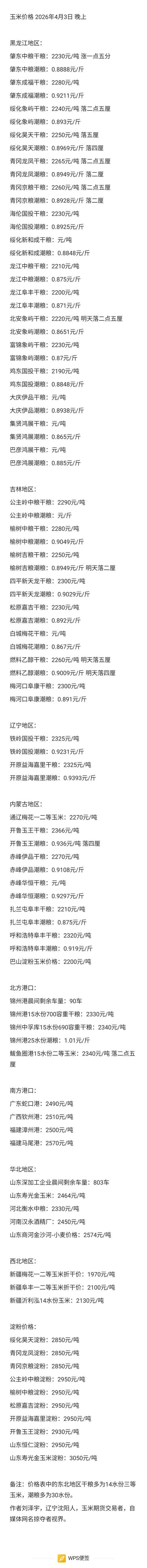 【玉米行情】4月3日,截止到晚上十一点,东北地区一家企业涨价,八家企业落价。 山东地区一家企业涨价,涨幅四厘,八家企业落价,跌幅二厘到八厘。 东北深加工企业落价的第八天,山东深加工企业落价的第一天,港口价格平稳。明天东北三省降雨,山东降雨。 替代品增加,进口谷物增加,需求端采购较弱,贸易商成本较高。港口要求带票以后,没票的粮源往哪去是个问题。港口要是趁这机会给自己的粮食涨一波价,也有可能。这段时间...