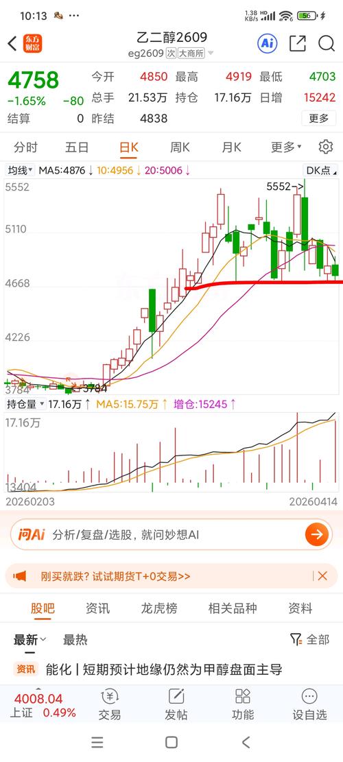 乙二醇4900附近布局可以跑一波了,剩下等待机会,就看4700这个位置能不能再次抗大旗