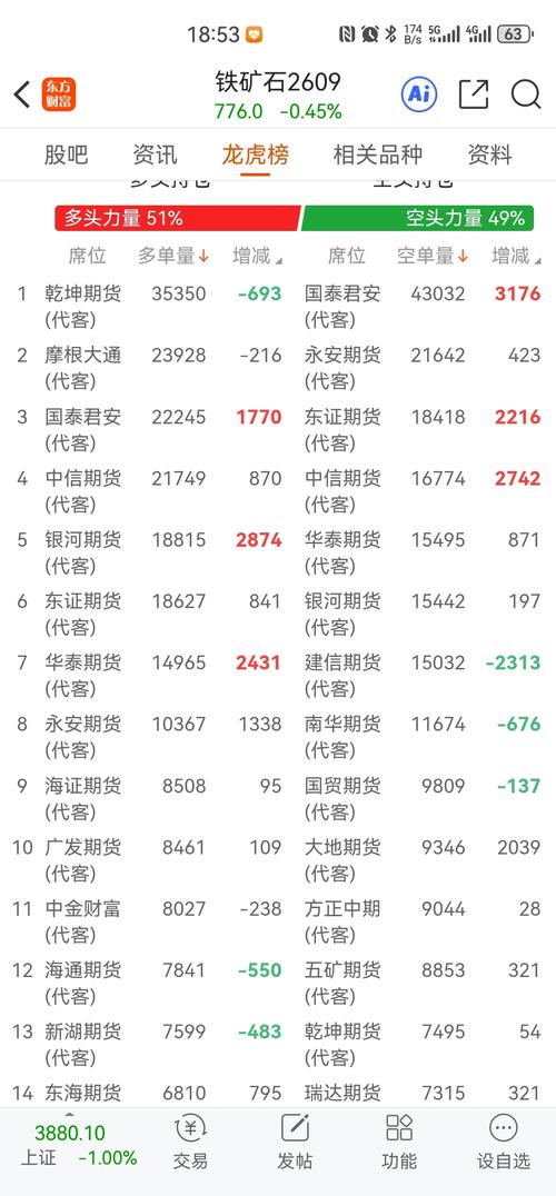 $铁矿石2609(DCE|i2609)$有没有注意到,前一段摩根乾坤无限加多,但是价格趋势没有上800,今天摩根乾坤开始小幅度减仓! 再看看期权p700的交易量,这两天暴增,多了3000多手,各位大神觉得有没有关联? 个人判断,铁矿石2609极有可能迎来暴跌,700可能会破!