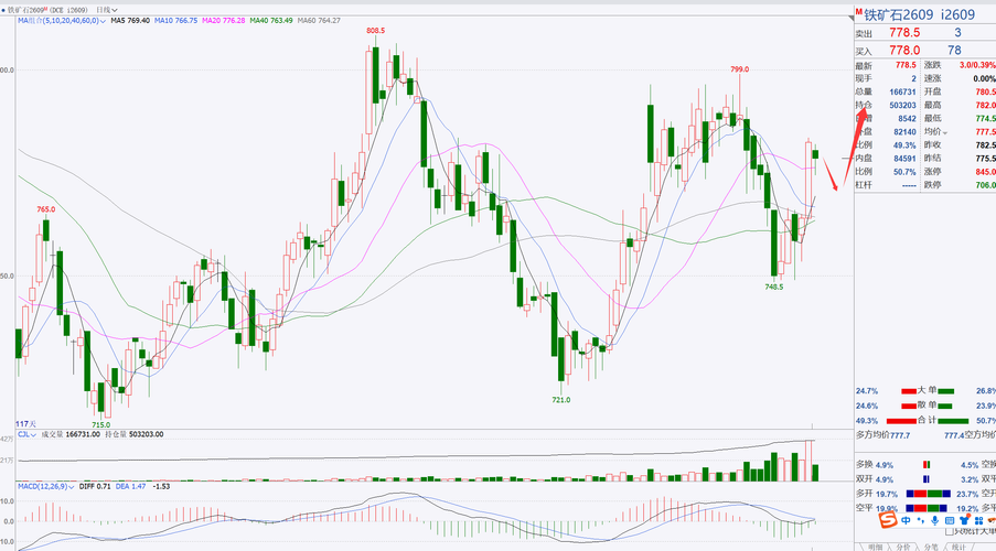 $铁矿石2609(DCE|i2609)$回踩770附近,做多为主,立帖为证。