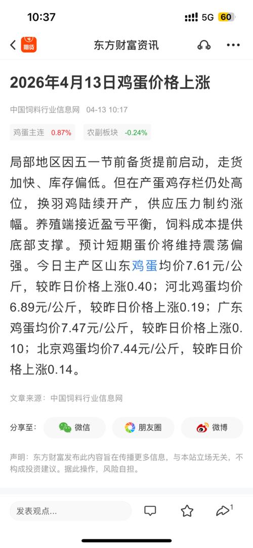 $鸡蛋2610(DCE|jd2610)$2026年4月13日河北省沧州市青县鸡蛋报价153/40涨8元,有空单的快走,快多2610.付海棠多了鸡蛋。