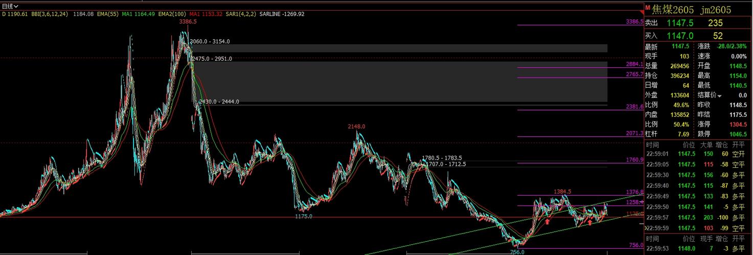 $焦煤2605(DCE|jm2605)$今早开盘不又得回到1150呀