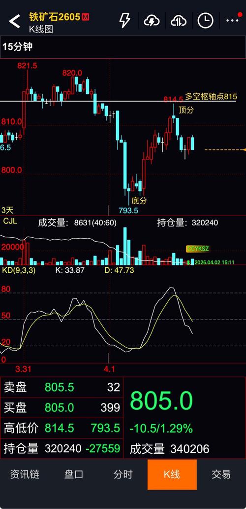 //@CCYKSZ:今天的铁矿石2605合约多空枢轴点815,815线上多,815线下空,815一点定多空。多头的趋势拐...87 -
