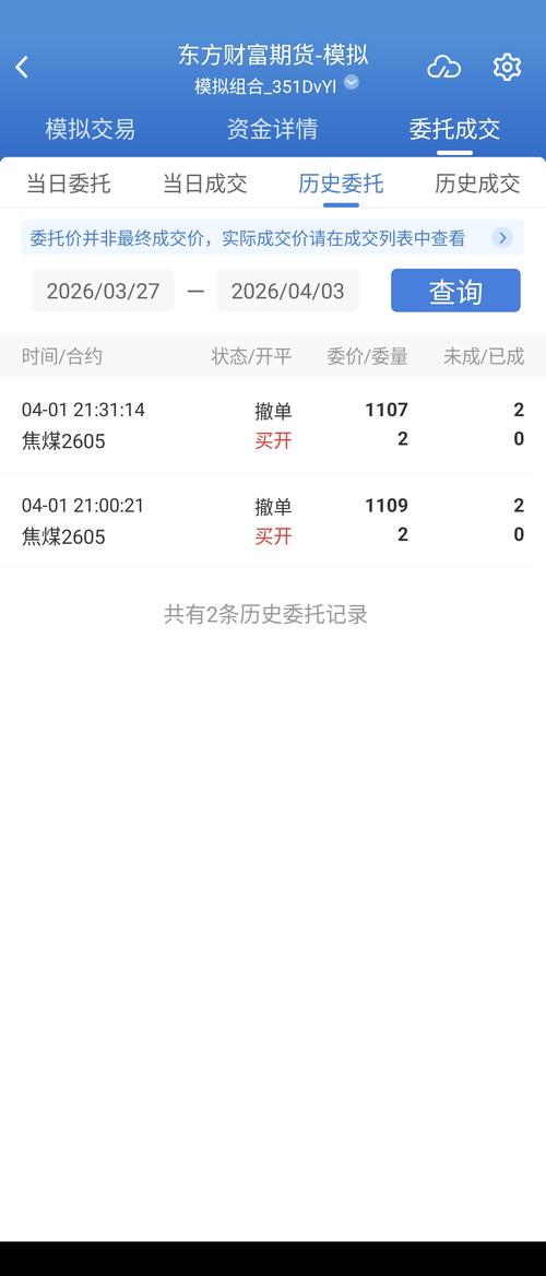 $焦煤2605(DCE|jm2605)$ 前天晚上重启模拟盘测试焦煤主连数据,主要是为了在脑子里先形成一个意识。 23年我使用过一次模拟盘,在明白如何操作后直接用实盘。 模拟盘只有在判断方向和数据达到相当准确度,方可启动实盘。