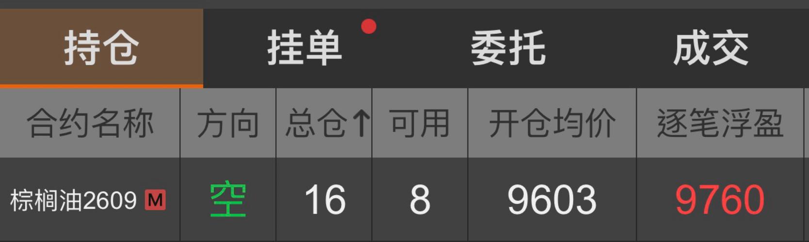 $棕榈油2609(DCE|p2609)$终究没能战胜人性,先止盈了。