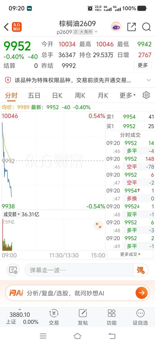 $棕榈油2605(DCE|p2605)$上不去了1万过不去了