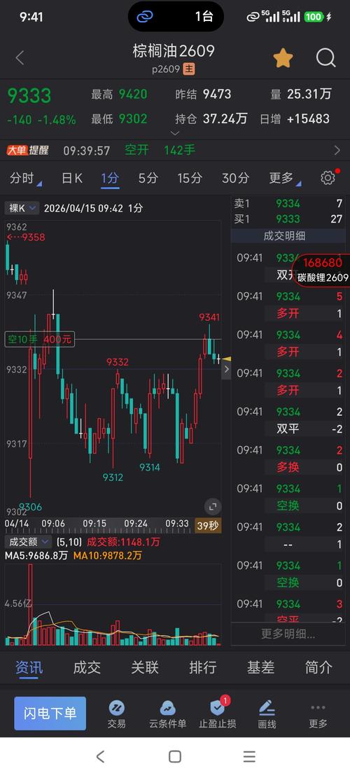 $棕榈油2609(DCE|p2609)$ 亏钱一天从空棕榈油,多碳酸锂开始!赚30点就跑