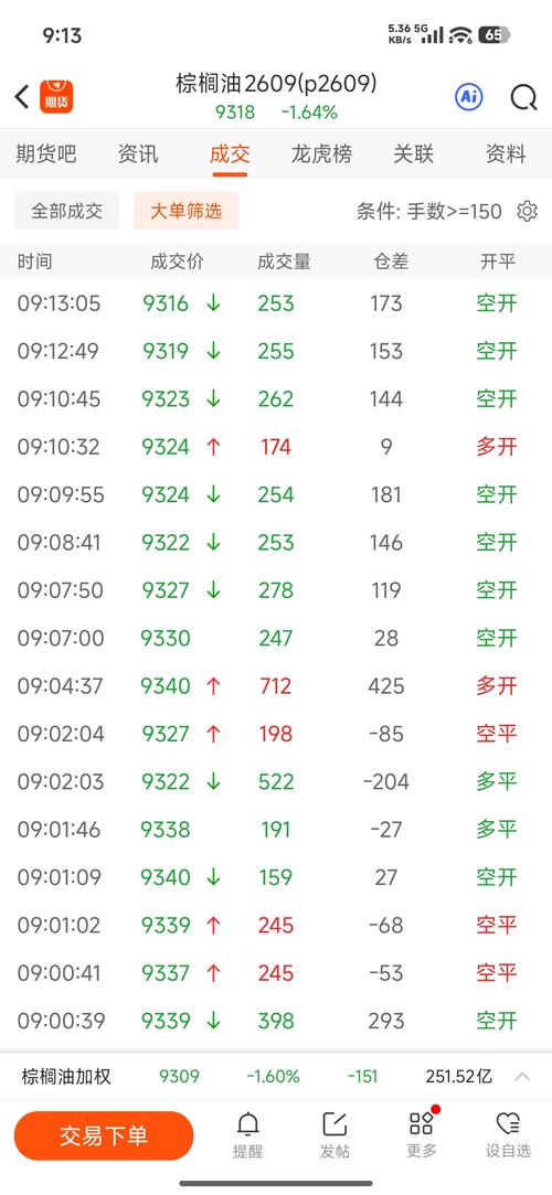 $棕榈油2609(DCE|p2609)$外资在跑,搞空单了。