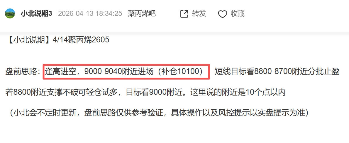$聚丙烯2605(DCE|pp2605)$聚丙烯空单兑现140点!4.1盘前给的思路是9040附近进场空单,今日盘中聚丙烯价格最低下行8850,完成利润兑现。(小北会不定时更新,盘前思路仅供参考验证,具体操作以及风控提示以实盘提示为准)