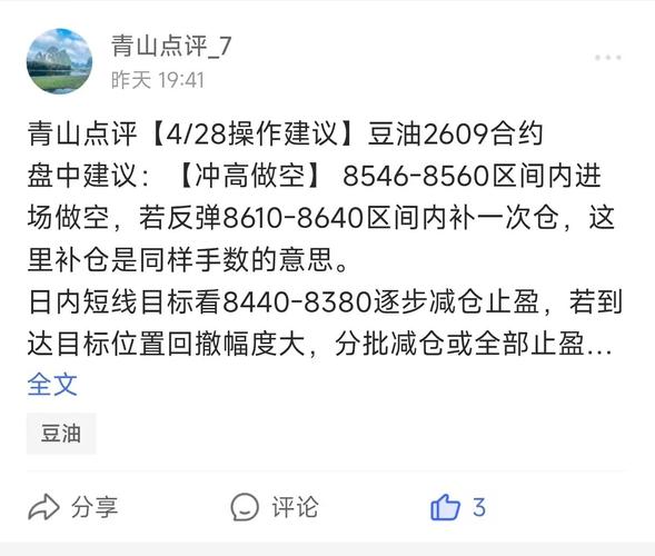 $豆油2609(DCE|y2609)$豆油2609合约4/28日收盘兑现!策略布局兑现45点左右空间出局! 夜盘前提示了8560空单(最高8570一带),今日最低8515一带,提示空单成功兑现45点左右空间出局!
