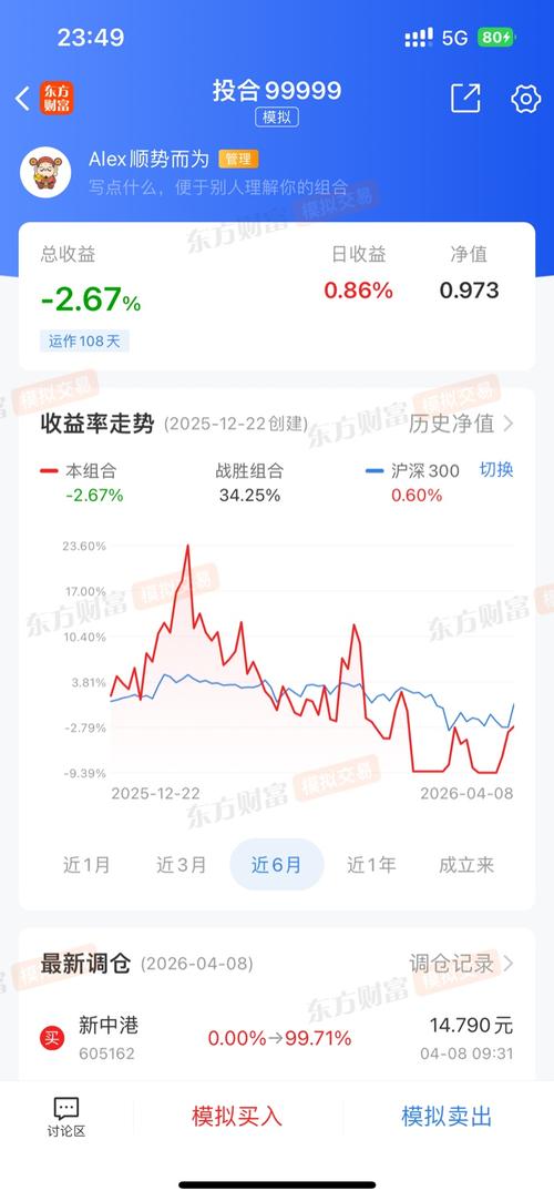 #炒股日记#模拟组合一个100天102%收益,一个105天-2.7%收益,冰火两重天